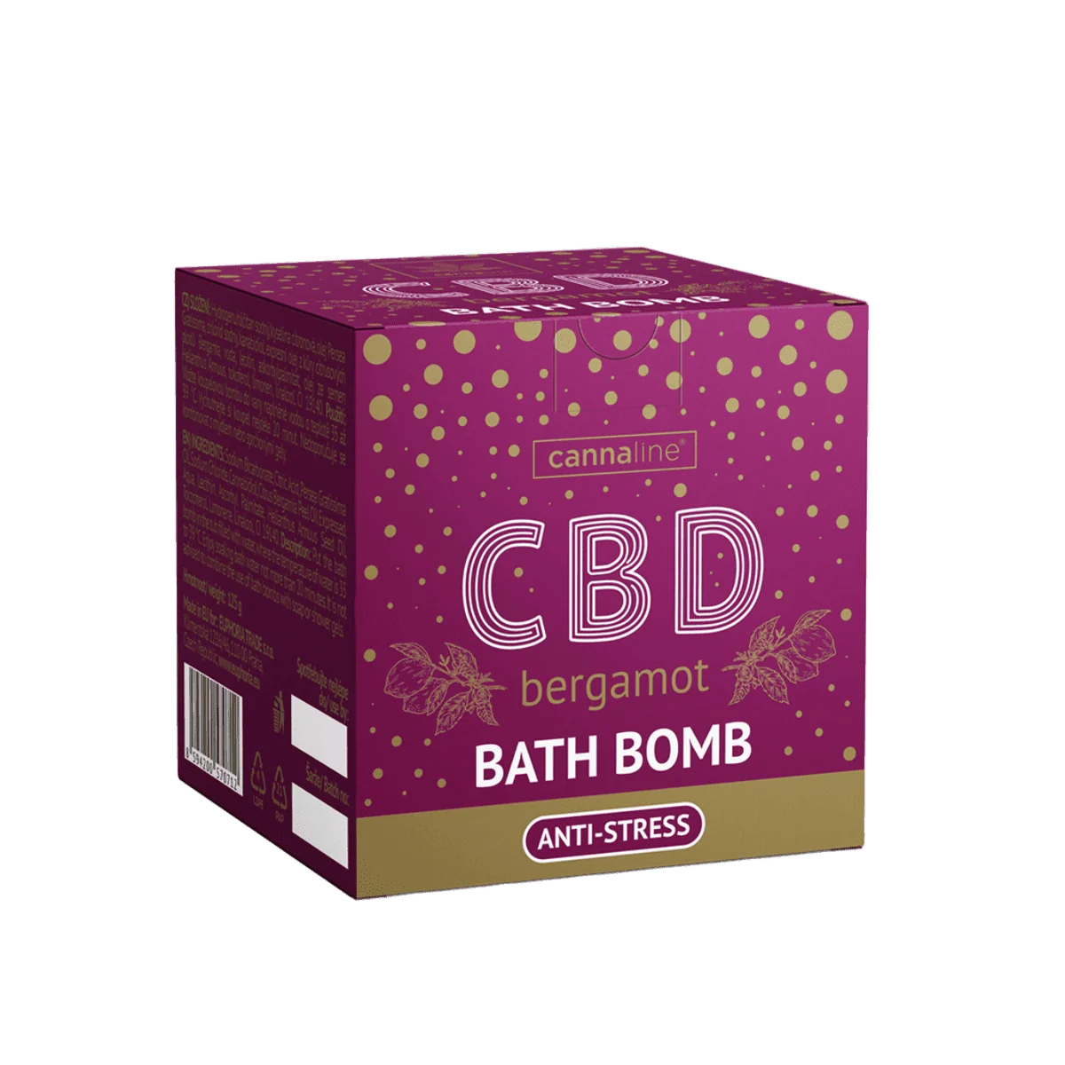 Ingredientes: Bicarbonato de sodio, ácido cítrico, aceite de Persea Gratissima, cloruro de sodio, cannabidiol, aceite de cáscara de Citrus Bergamia, agua, lecitina, palmitato de ascorbilo, aceite de semilla de Helianthus Annuus, tocoferol, limoneno, linalool, CI 19140.