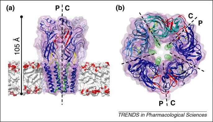 “Los receptores de bucle Cys pertenecen a la familia de canales iónicos pentaméricos activados por ligandos (pLGICs). Se expresan ampliamente en el sistema nervioso, donde ejercen un rol vital en la comunicación neuronal. Están involucrados en los procesos de aprendizaje, memoria, movimiento, entre otros. Cada familia consta de varias subunidades. En los mamíferos, pertenecen a esta familia los receptores GABA de tipo A (GABAAR), los receptores de glicina (GlyR), los receptores de serotonina de tipo 3 (5-HT3R) y los receptores nicotínicos de acetilcolina (nAChR). Varios estudios han demostrado diferentes efectos moduladores de los cannabinoides sobre varios miembros de la familia de receptores bucle Cys.”